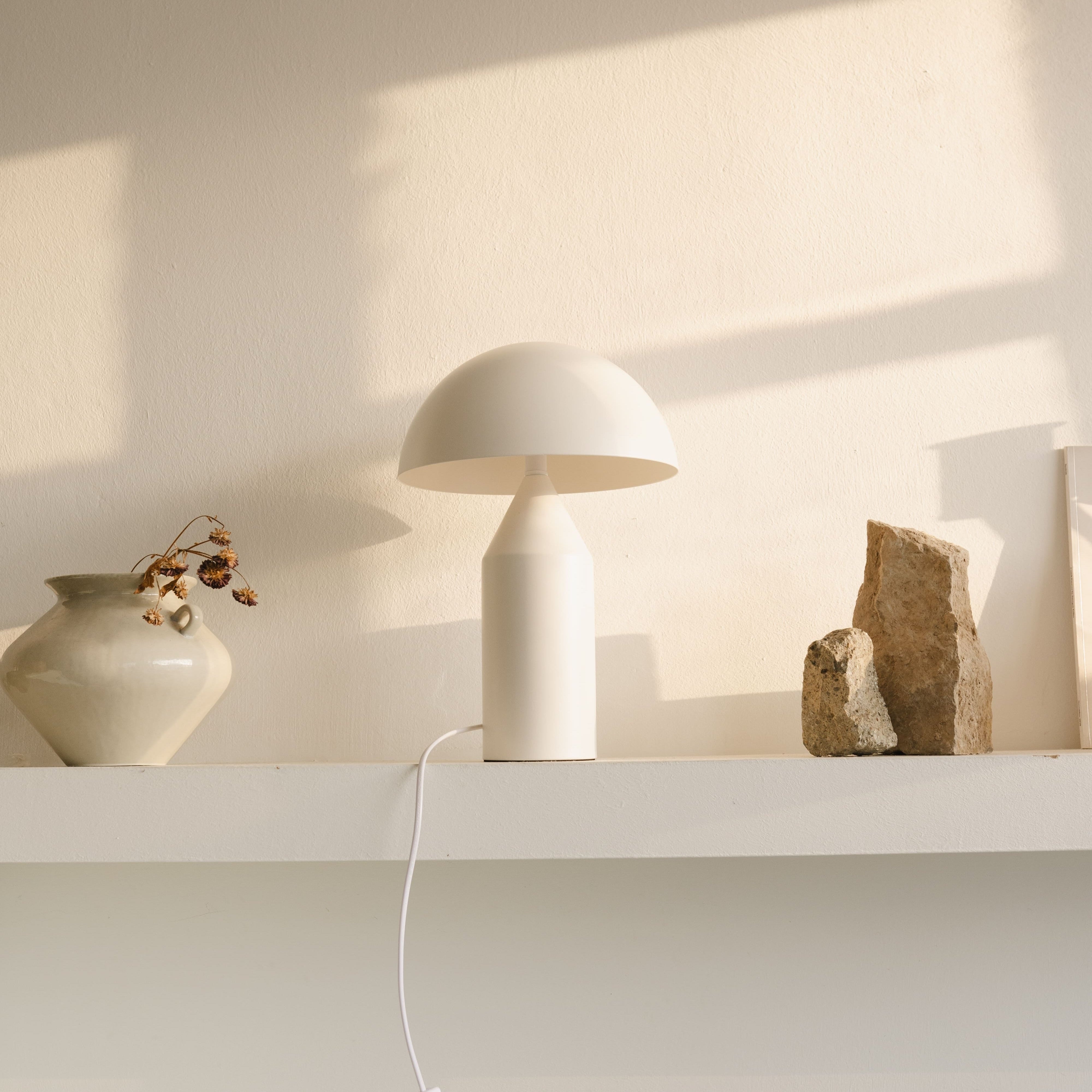 Su diseño versátil encaja tanto en entornos minimalistos como clásicos; desde iluminar tus invitados en una cena hasta relajar tu ambiente en una estantería.